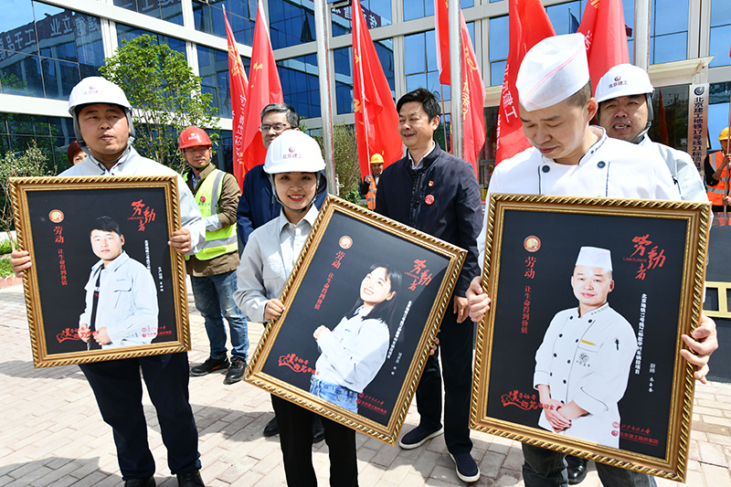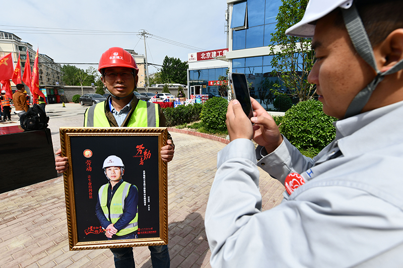 当日,由北京市总工会主办的“首都劳动者微笑迎‘五一’暨创新实干勇争先劳动竞赛”,在北京建工集团地铁歇甲村车辆段项目部举行,参与北京市轨道交通建设的劳动者获赠自己的微笑照片,迎接属于自己的节日。