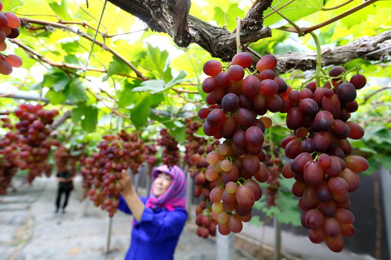 初夏时节,青岛市即墨区移风店镇上泊村的暖棚葡萄进入成熟期,果农们忙着采摘,供应市场。近年来,即墨区移风店镇引导农民采取“合作社+农户”的模式,因地制宜发展有采暖设施的葡萄暖棚,打造农旅融合田园观光综合体,带动农民增收,助力乡村振兴。
