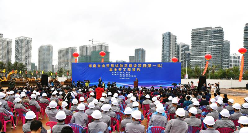 11月28日,海南自由贸易试验区建设项目第一批集中开工和签约。第一批开工项目100个,总投资298亿元人民币;集中签约项目41个,总投资342亿元。