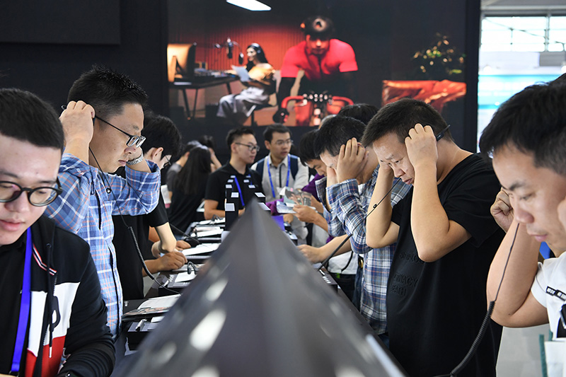 11月13日,观众在第二十一届高交会上体验耳机产品。