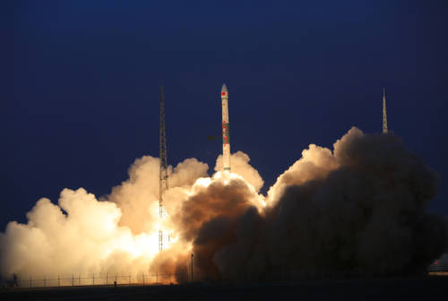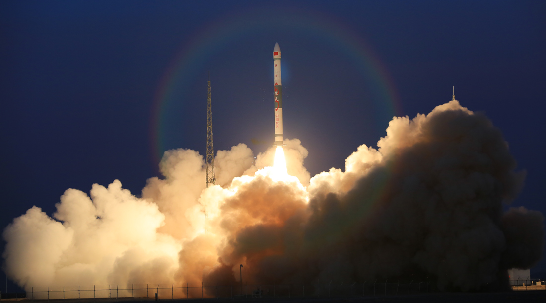 11月17日18时,我国在酒泉卫星发射中心用快舟一号甲运载火箭,以“一箭双星”的方式成功将全球多媒体卫星系统α阶段A、B卫星(KL-α-A、KL-α-B)发射升空。卫星顺利进入预定轨道,任务获得圆满成功。