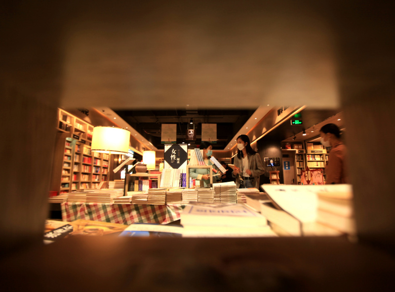4月22日,读者在杭州市萧山区的一家书店内选购书籍。