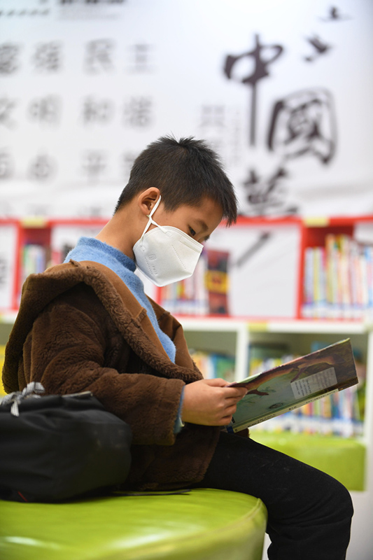 4月22日,读者在山东省临沂市一家书店内翻阅书籍。