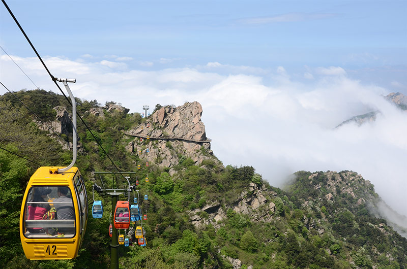 5月5日,游客乘坐索道在位于山东省临沂市平邑县的蒙山龟蒙景区游览。