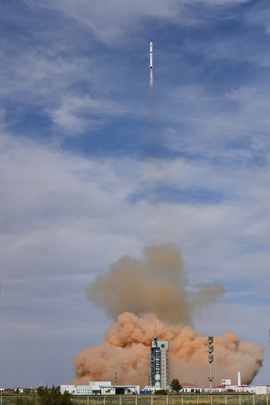 5月31日16时53分,我国在酒泉卫星发射中心用长征二号丁运载火箭,成功将高分九号02星、和德四号卫星送入预定轨道,发射获得圆满成功。新华社发(汪江波 摄)