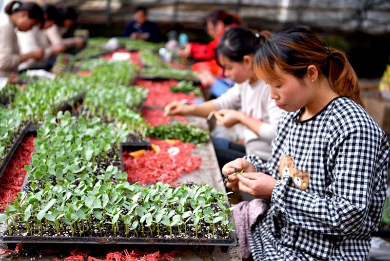 1月4日,安徽省亳州市谯城区张店乡年丰蔬菜种植农民专业合作社的工人在育苗大棚内忙碌。