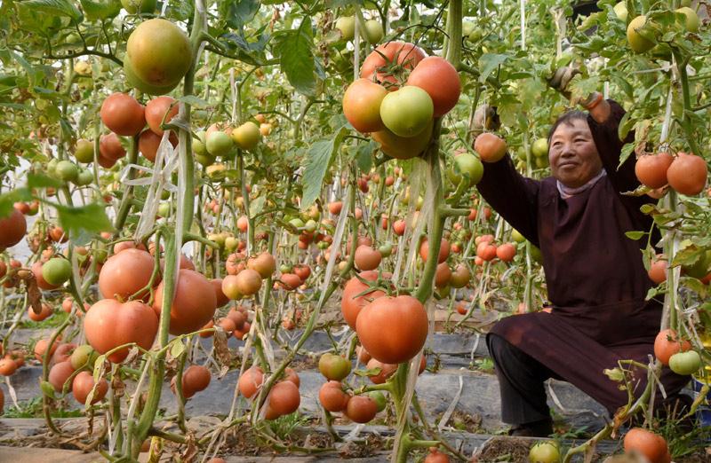 1月4日,河北省邯郸市峰峰矿区界城镇孙庄村的农民在西红柿大棚里劳作。