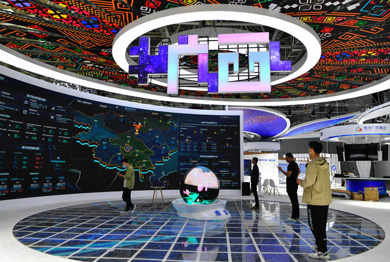 这是第四届数字中国建设峰会的数字中国建设成果展览会现场(4月22日摄)。