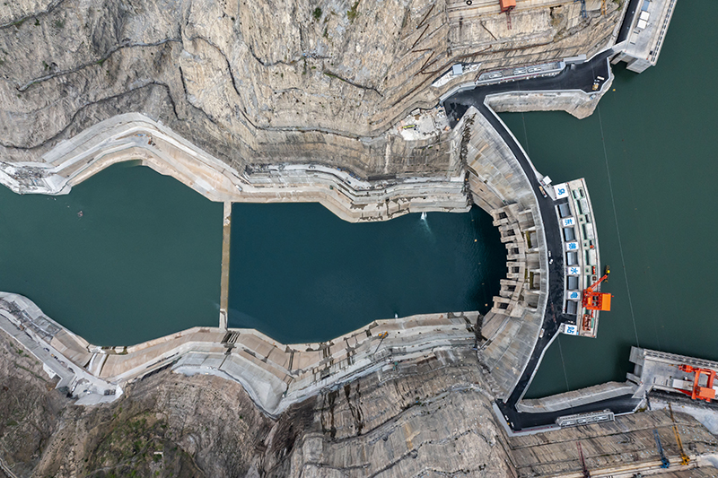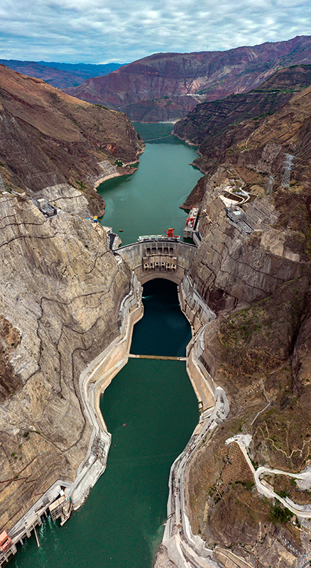 空中俯瞰乌东德水电站全景(6月16日摄,无人机照片)。