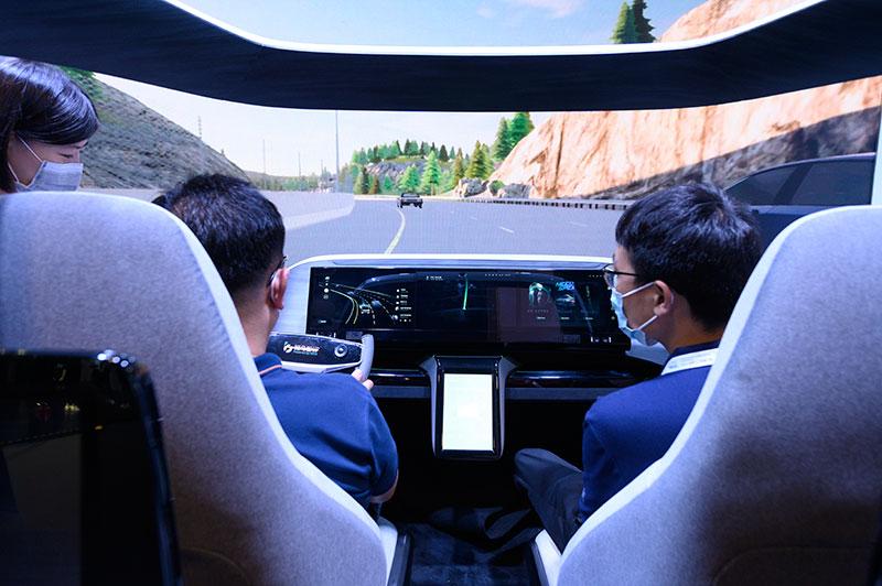 7月7日,在世界人工智能大会体验日,观众在体验智能座舱。