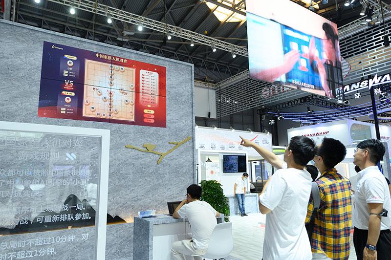 7月7日,在世界人工智能大会体验日,观众在观看中国象棋人机对弈。