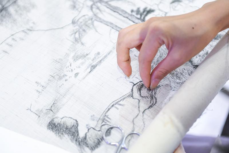 9月23日,参展者在第十七届文博会场馆江西展台展示非遗夏布绣。