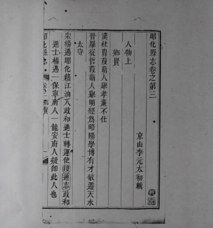 清李元纂修。李元,字太初,号浑斋,湖北京山县举人,乾隆五十年(1785)署昭化县知县时,尝主修《昭化县志》六卷。乾隆五十五年(1790)任崇庆州州同时,撰有记述该州事略的“杂记”。嘉庆六年(1801)任四川南充县知县,并署仁寿县知县。所著尚有《蜀水经》十六卷。参见“【乾隆】崇庆州志”条、“【嘉庆】仁寿县志”条。