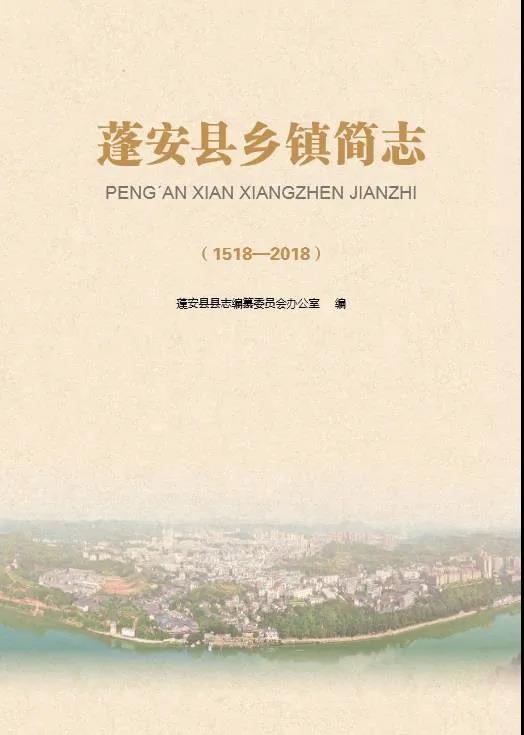 2020年9月,《蓬安县乡镇简志(1518—2018)》由江苏广陵书社出版发行。该书设概述及39个乡镇共40小节,每个乡镇设建置沿革、环境资源、党建工作、经济工作、基础建设、社会事业、风景名胜、名人乡贤、村规民约、家风家训等条目,全面记载全县乡镇改革前的历史和现状,每一小节都反映当地历史变迁、社会进步、经济发展、人文风俗等内容。全书33万字,彩图205幅,将2019年9月乡镇行政区划调整改革这个时间节点各乡镇政府驻地外观以及地址编排入志,图文并茂、生动形象地记录了重大历史时刻。