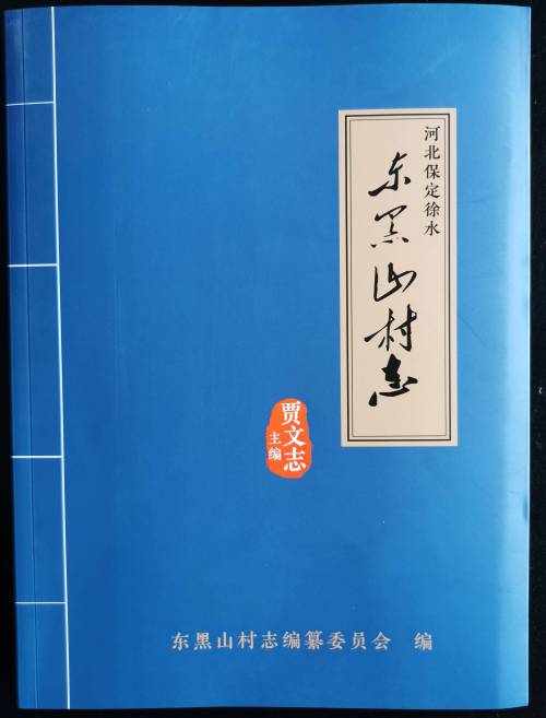 2020年8月,由东黑山村志编纂委员会编纂的《东黑山村志》内部印刷出版,主编贾文志。该志是保定市徐水区东黑山村有史以来第一部村志,涵盖基本村情、自然地理、政治经济、文化教育、生产生活、社会民生、民情风俗、旧址遗址等方面内容,全书设24章,计19余万字,彩页、插图近200幅。